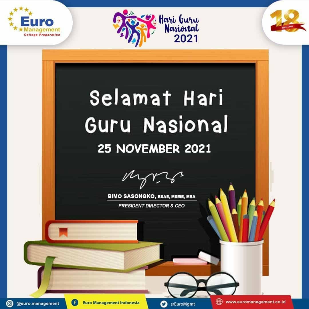 Euro Management Indonesia selaku institusi konsultan pendidikan internasional turut mengapresiasi para pengajarnya dengan menghadirkan syukuran kecil memperingati Hari Guru Nasional 2021.